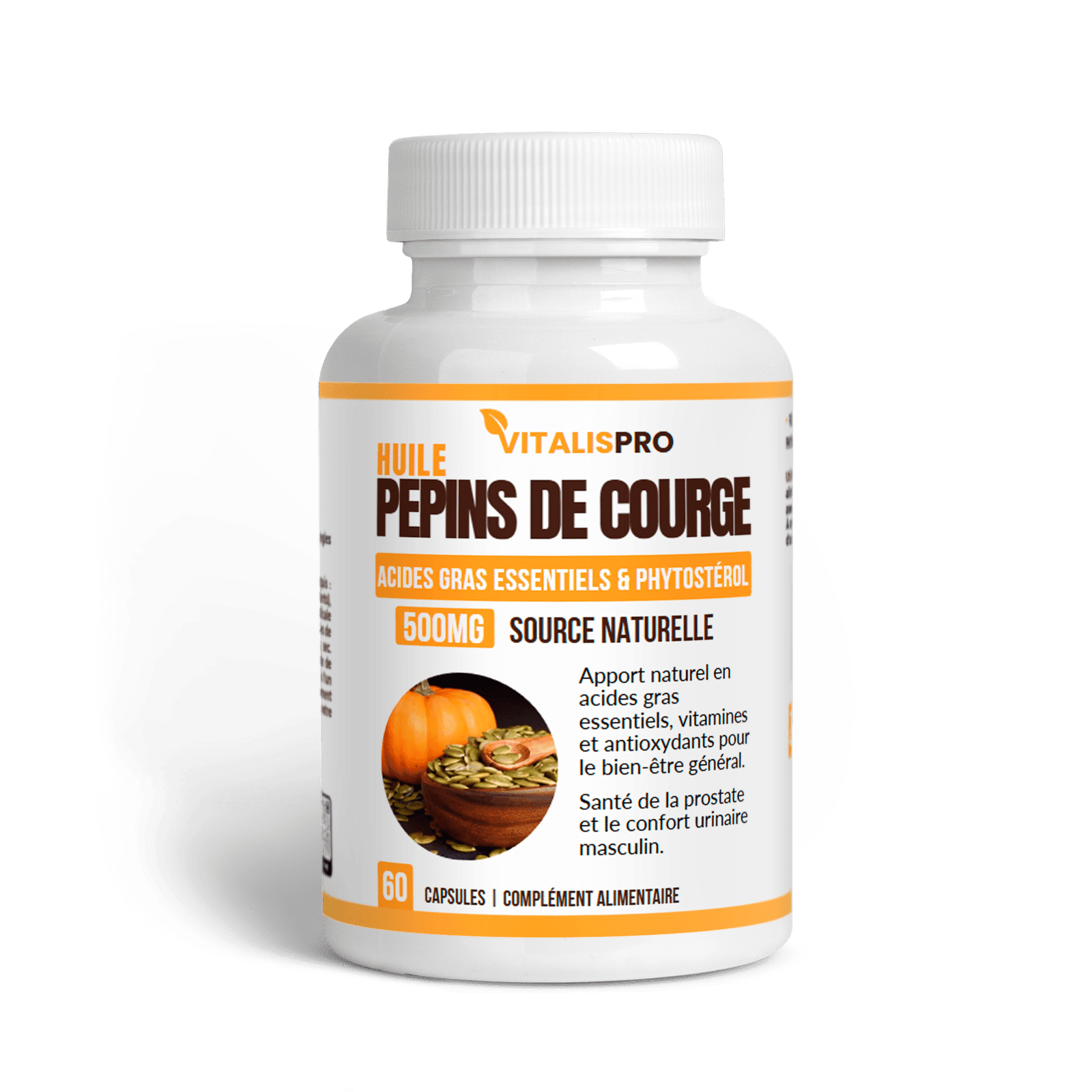 Huile de Pépins de Courge 500 mg – Prostate, Cœur & Confort Urinaire