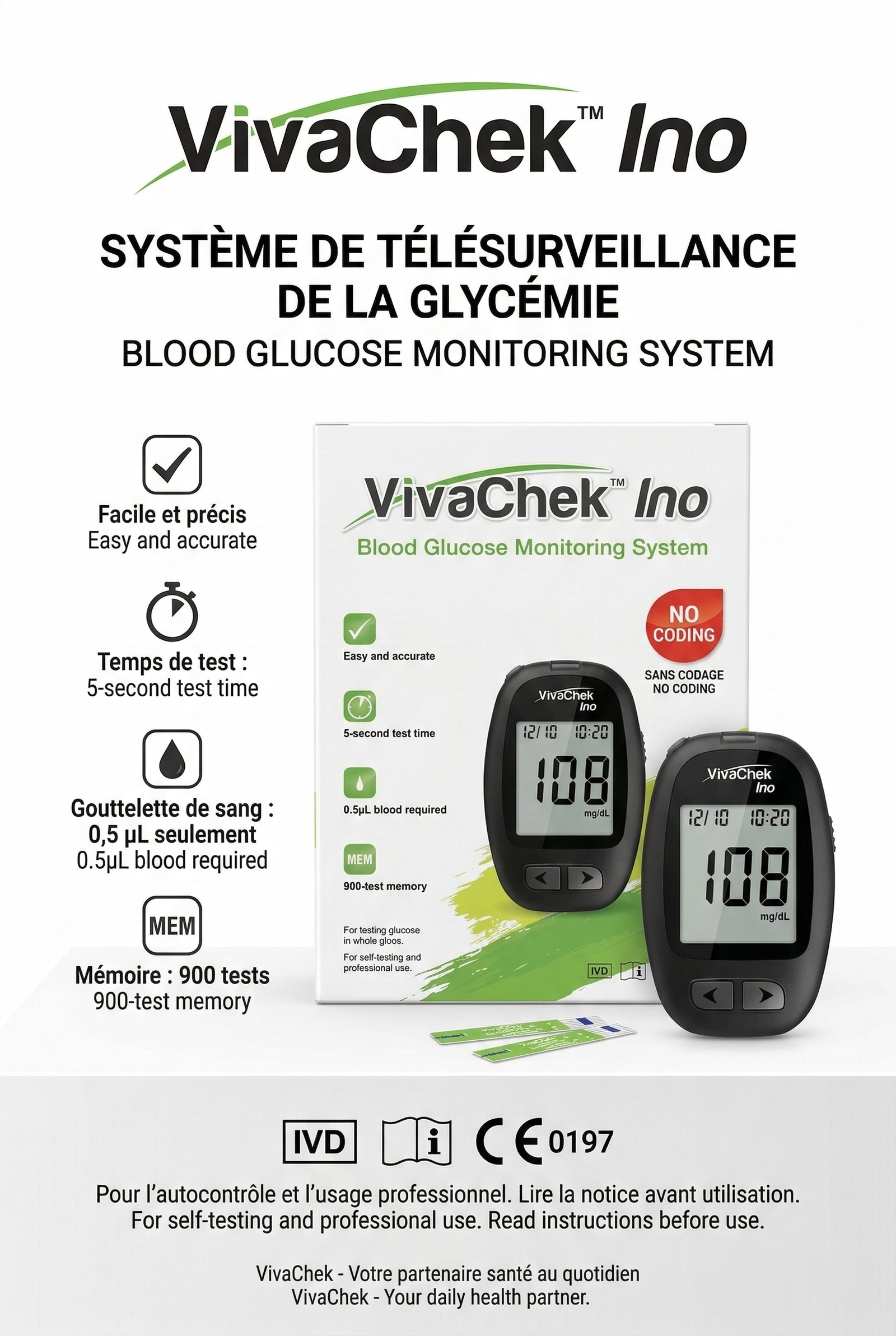 Lecteur de glycémie VivaChek Ino – Kit Complet + 10 Bandelettes