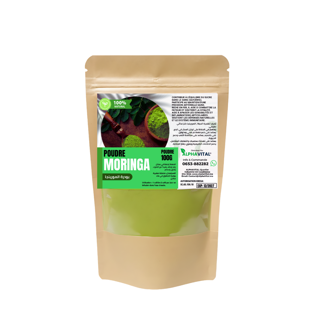 AlphaVital : Poudre de Moringa Pure (100g) – Le Super-Aliment Essentiel Certifié ONSSA