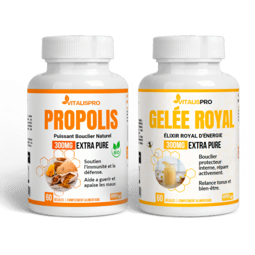 Individuellement, la Propolis et la Gelée Royale sont des trésors naturels. Mais ensemble, elles offrent un soutien synergique qui maximise leurs bienfaits pour renforcer votre soutien immunité, augmenter votre énergie, et améliorer votre santé globale.