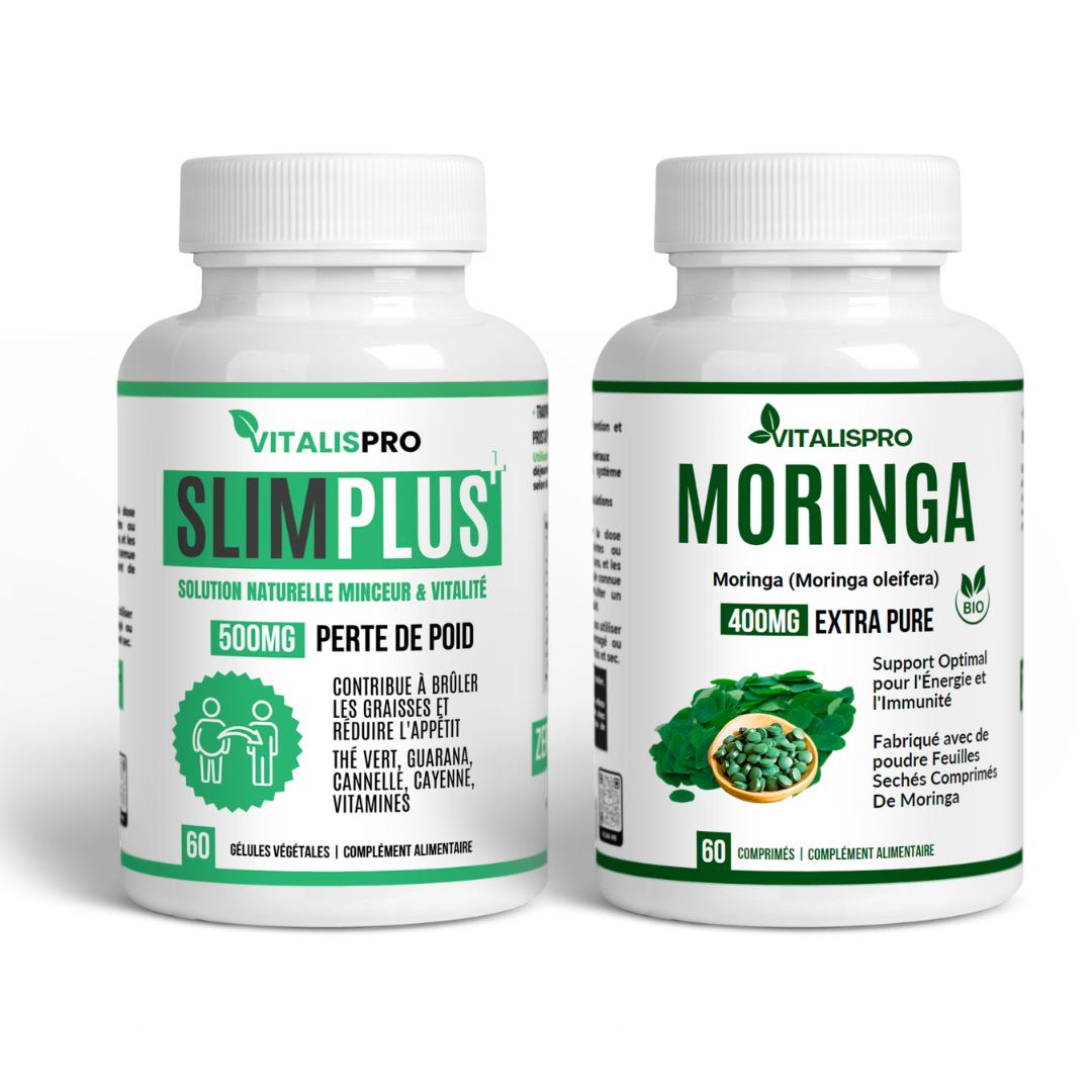 - Soutien Métabolique Complet : **Slim Plus** et le Moringa agissent en harmonie pour soutenir le **métabolisme** du corps, aidant à utiliser les calories plus efficacement et à transformer les aliments en **Énergie**.